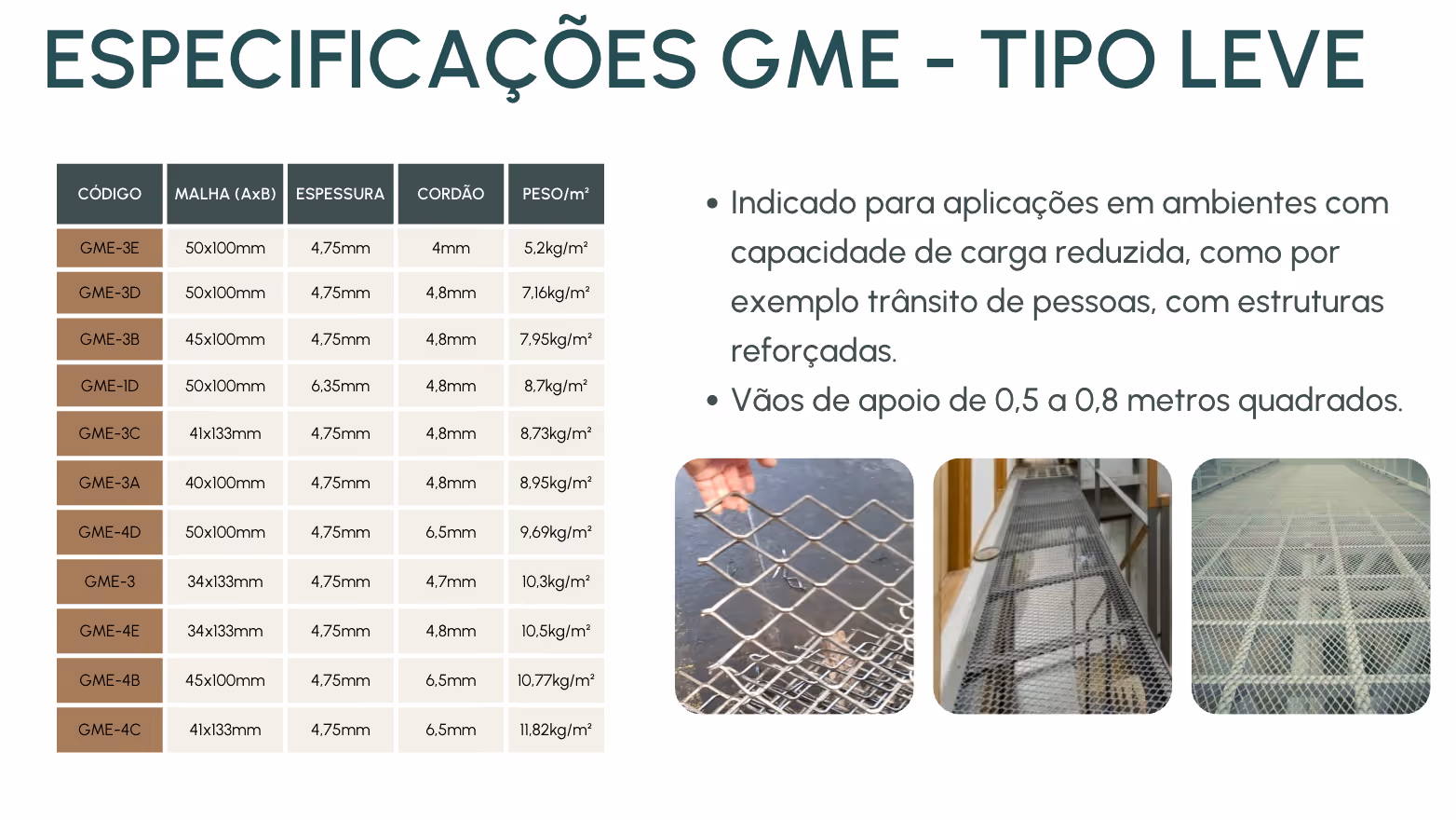 Perfeita para plataformas, passadiços e estruturas metálicas em geral.